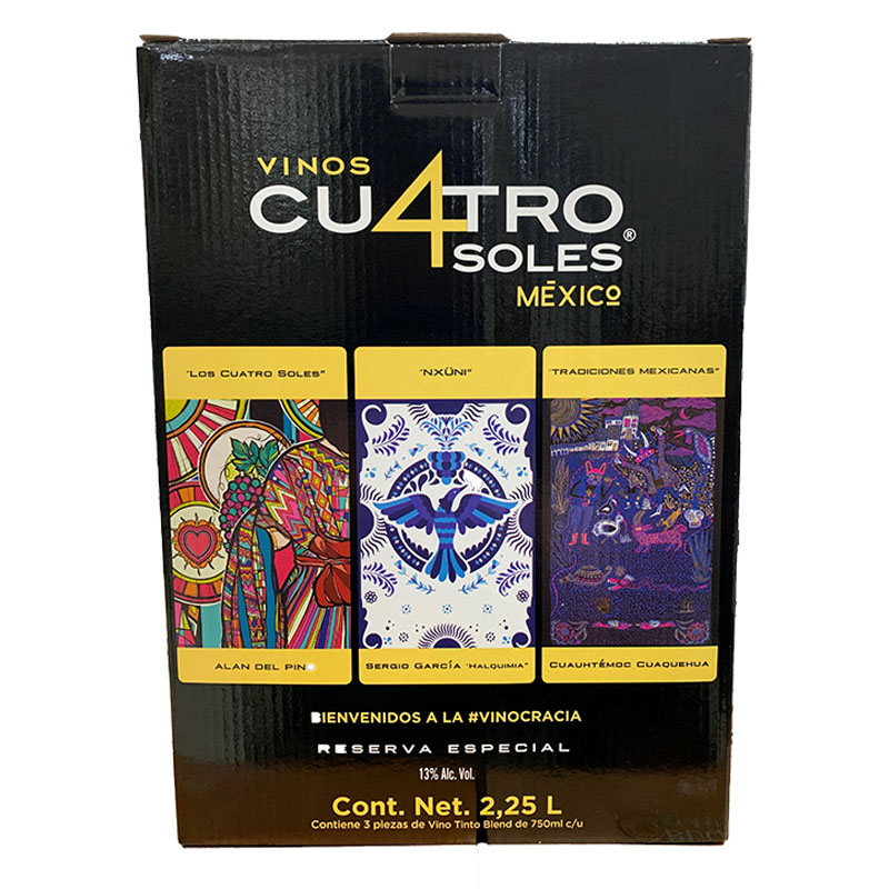 Cuatro Soles nace en los valles vitivinícolas del norte de México, donde la altitud, los días cálidos y las noches frescas permiten una maduración equilibrada de variedades tintas internacionales. Esta región, con suelos franco-arenosos y clima semidesértico, ha demostrado su capacidad para producir vinos de carácter honesto y frutal. El blend refleja la filosofía de ensamblaje moderna: combinar lo mejor de cada variedad para lograr complejidad sin perder frescura. Es un vino que habla del terruño mexicano sin pretensiones, con identidad propia y vocación de mesa.