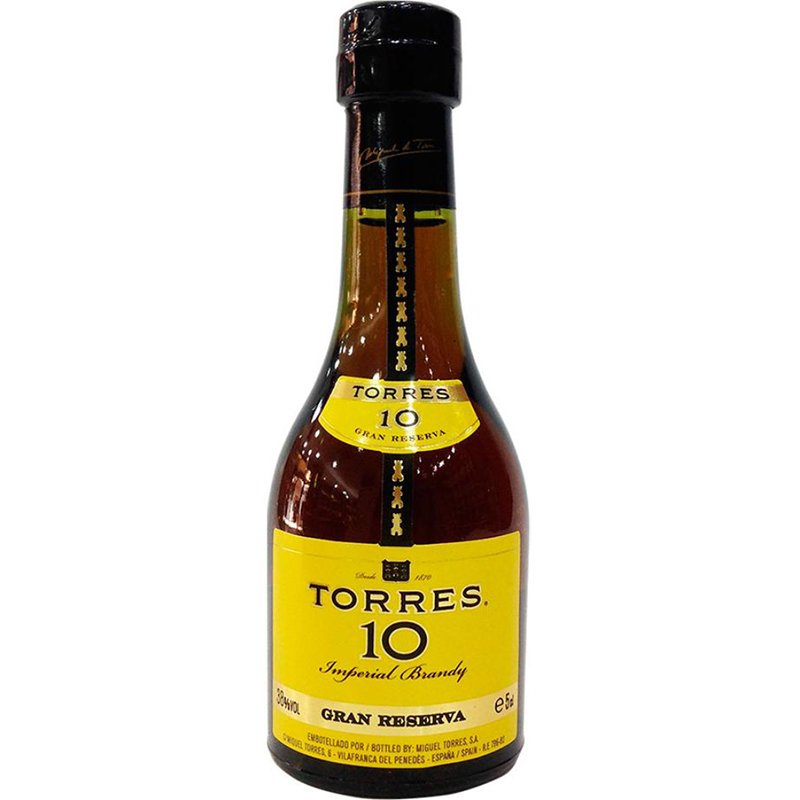 Este formato es ideal para quienes desean experimentar el sabor clásico de Torres 10 antes de adquirir una presentación más grande o para llevarlo como detalle especial en eventos y reuniones.