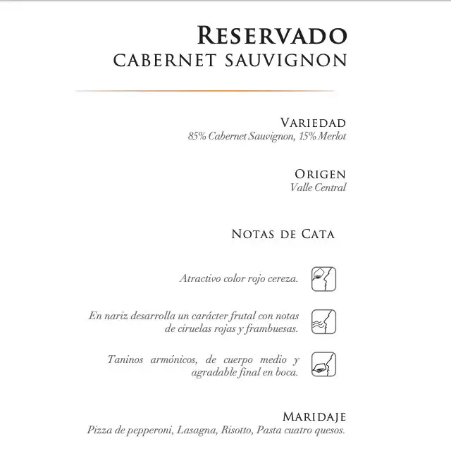 Características principales del Vino Tinto Concha y Toro Reservado Cabernet Sauvignon 750 ml