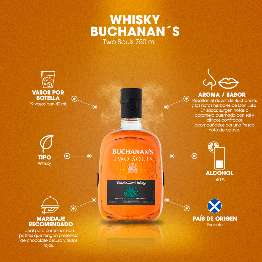 Whisky Buchanan’s Two Souls 750 ml: La fusión perfecta de Escocia y México