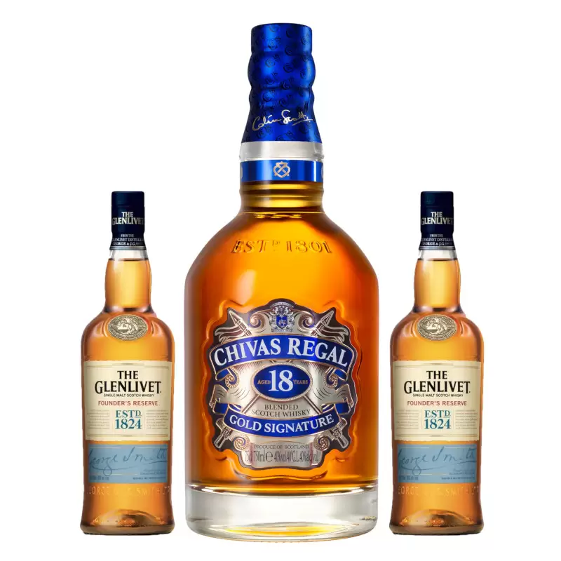 Whisky Chivas Regal 18 Años 750 ml. + 2 Glenlivet Founders 200 ml.